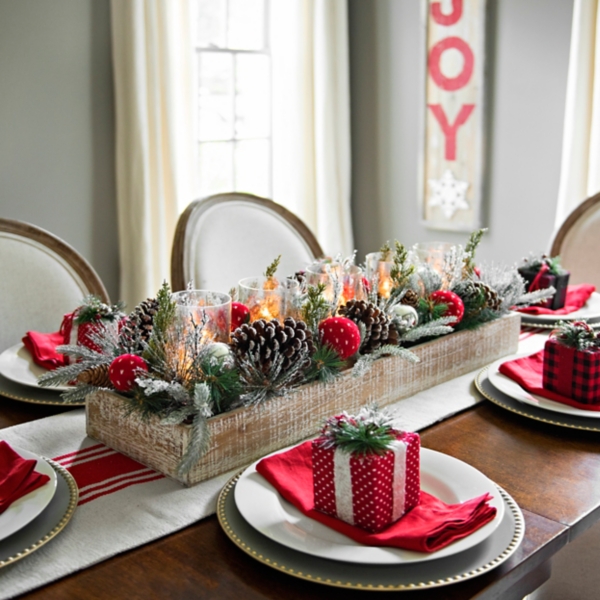 Christmas Candle Holder Pine Cone Berries Woodland Rustic Xmas