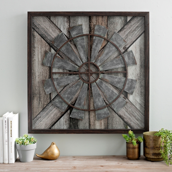 Metal Silver Rust Round Windmill Wall Decor Fh1057 The Home Depot