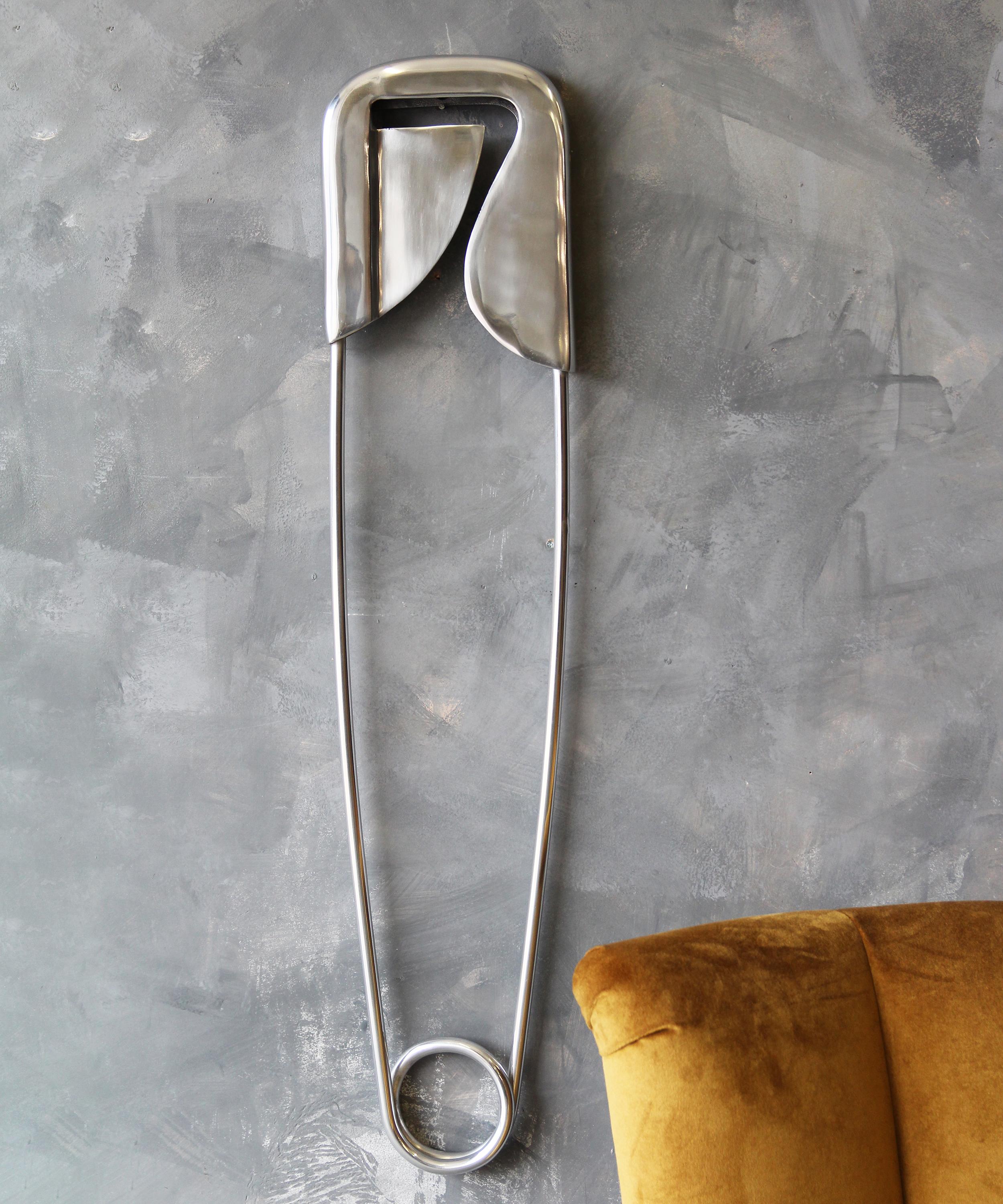 Large Polished Aluminium Safety Pin Wall Decor