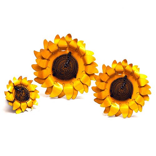 Set Of 3 Metal Sunflower Yard Art Sculptures