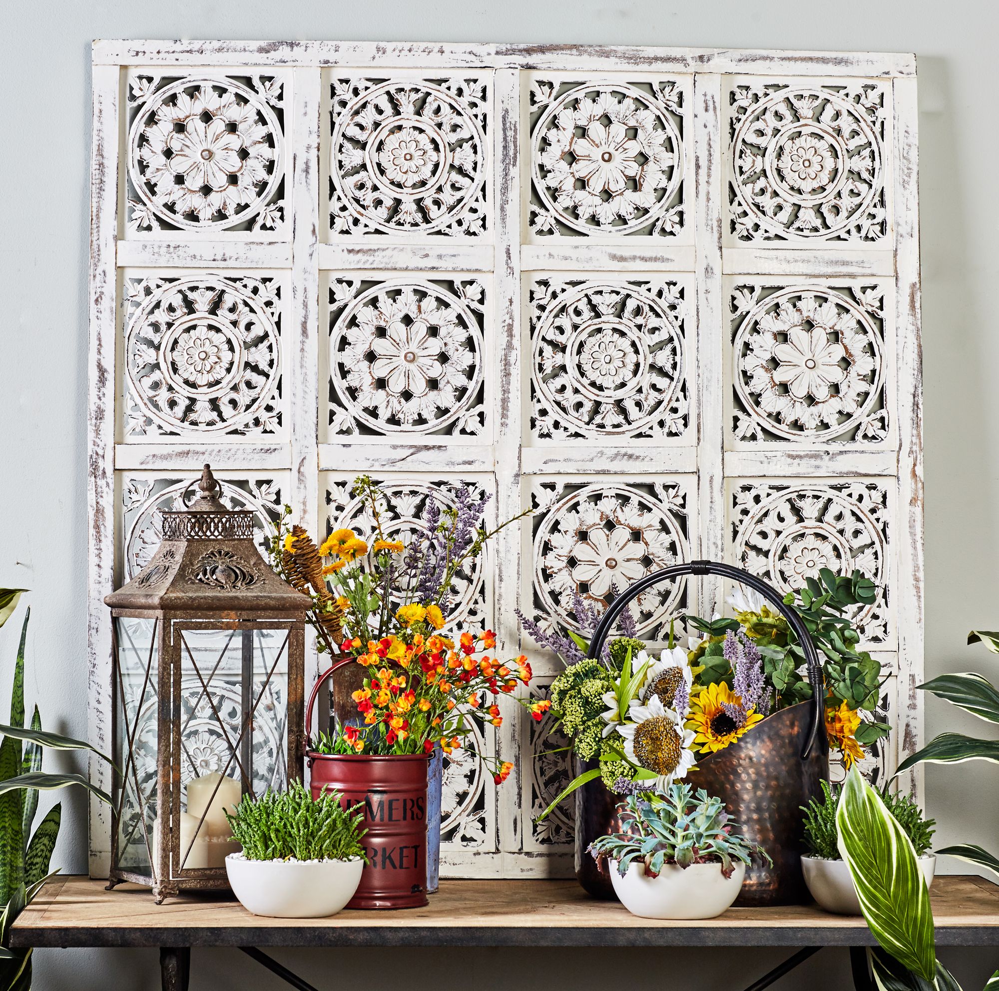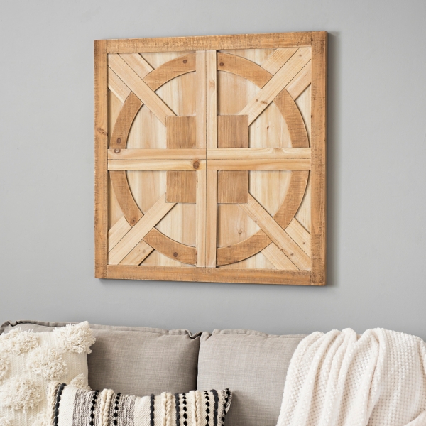 Square Carved Quatrefoil Wood Wall Decor