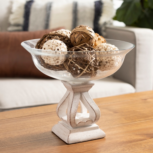 White Kynzie Stand With Glass Bowl Kirklands