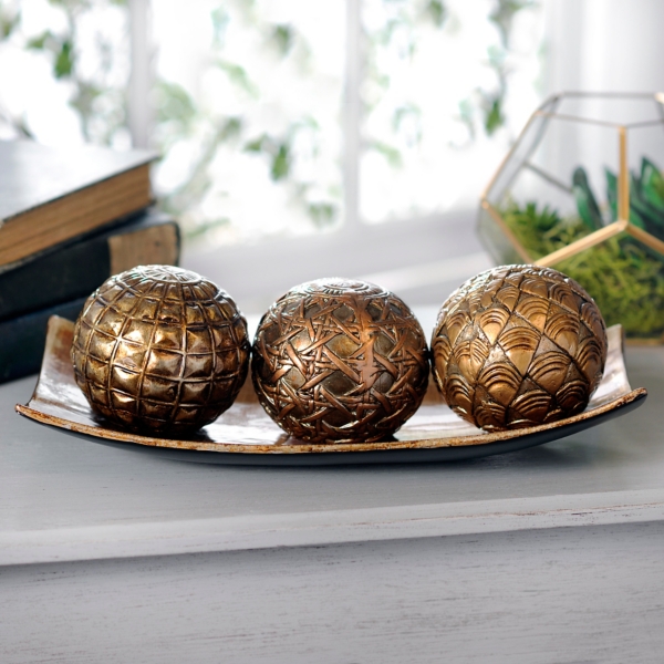 Metallic Ceramic Orbs And Tray Set Of 4 Kirklands