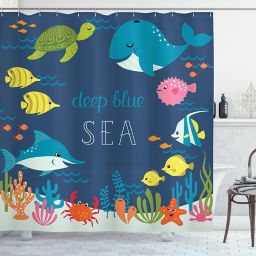 Amazon Com Ambesonne Turtle Shower Curtain Cartoon Animal Under