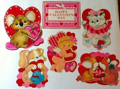 Vintage Valentine Die Cut Cardboard Decorations Cupids Velvet
