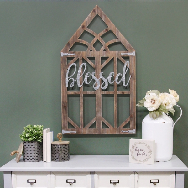 One Allium Way Rustic Wood Cathedral Window Frame Wall Decor