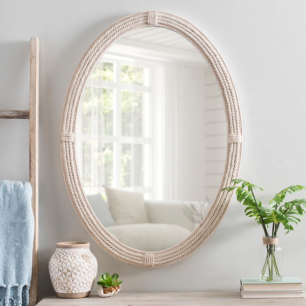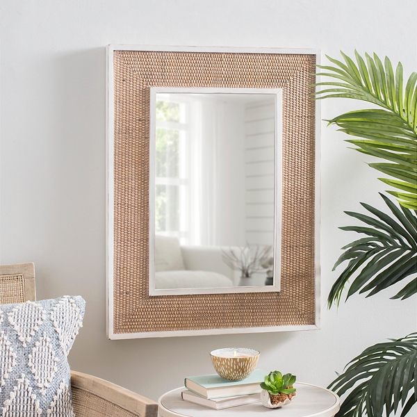 White Wood And Rattan Wall Mirror 24x32 In Kirklands