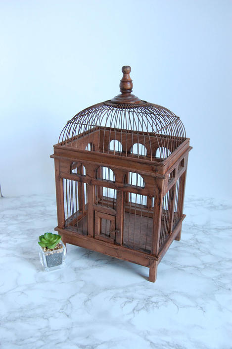 Antique Wood Reed Wire Bird Cage Birdcage Birdhouse House