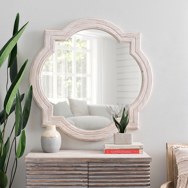 China Curved Design Decorative Antique Wooden Wall Mirror Lh