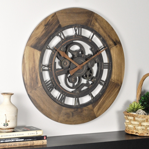 Decorative Vintage Wooden Gear Wall Clock Large Round Wall Clock